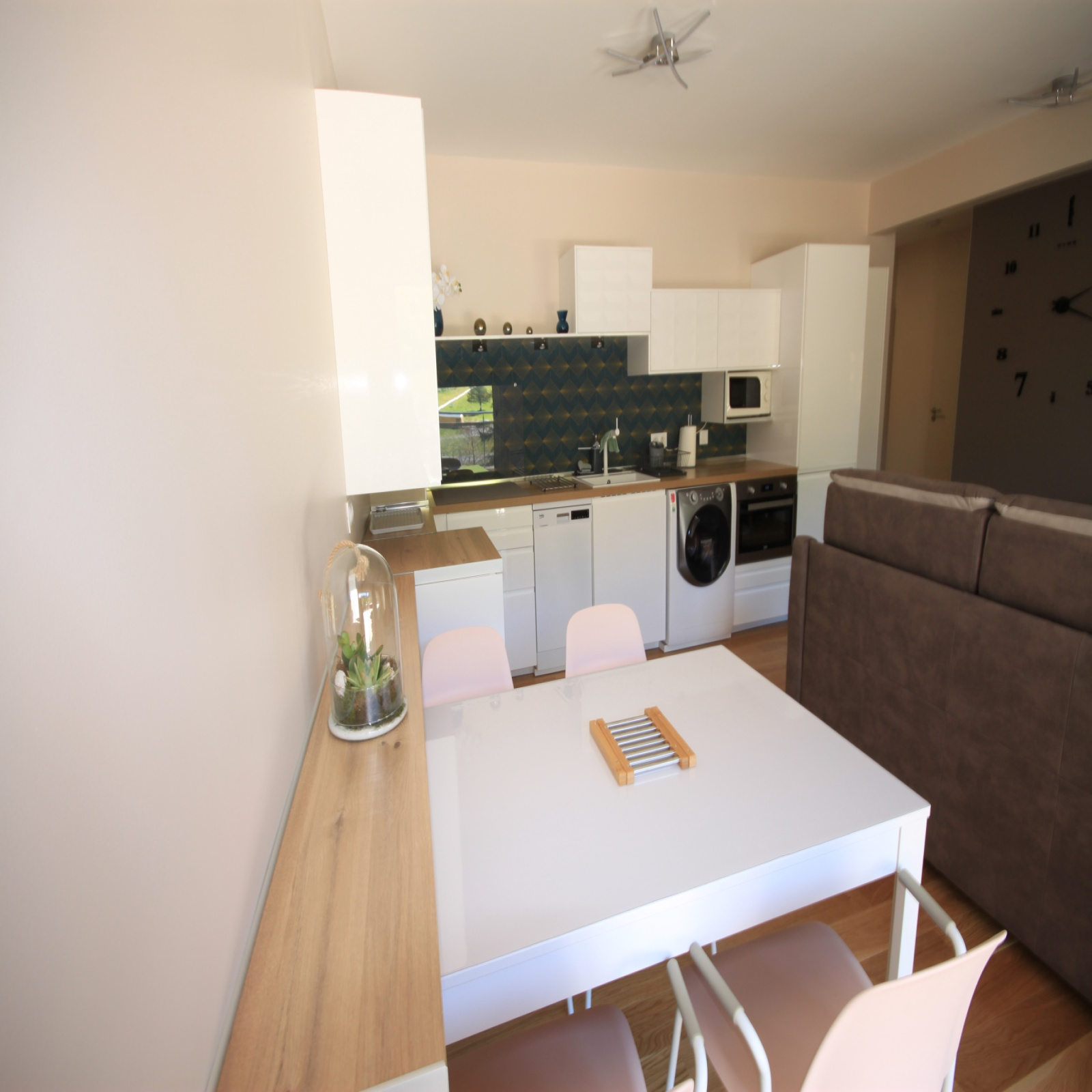 Cet appartement de 52 m² composé d'une cuisine ouverte sur séjour, une chambre, une salle d'eau et un wc est équipé de tout le confort d'un 4* et fonctionnel pour accueillir 4 personnes.
