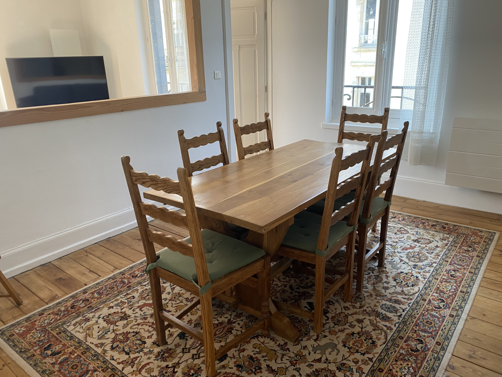 Les huisseries sont en double vitrage sauf la fenêtre de la pièce qui sert de débarras.