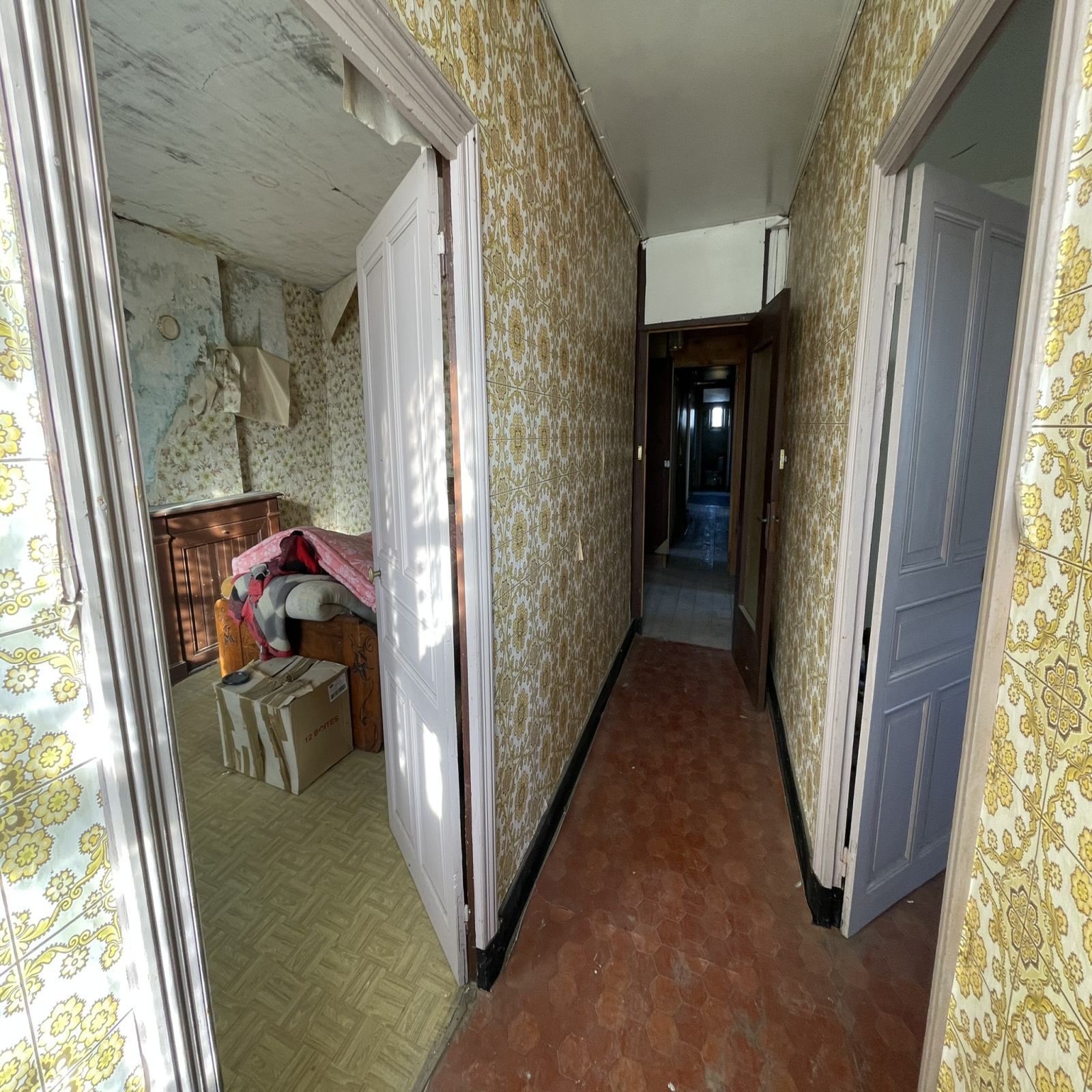 Au deuxième étage, un vaste couloir s'ouvre sur 9 pièces, offrant une toile vierge pour la création de plusieurs appartements ou l'extension de l'étage inférieur.