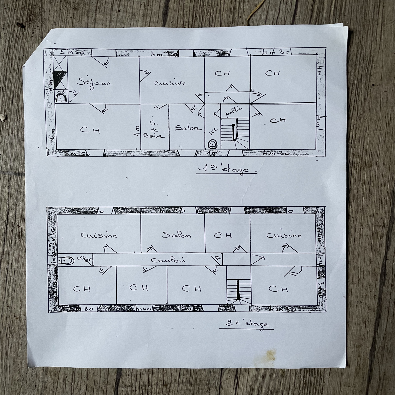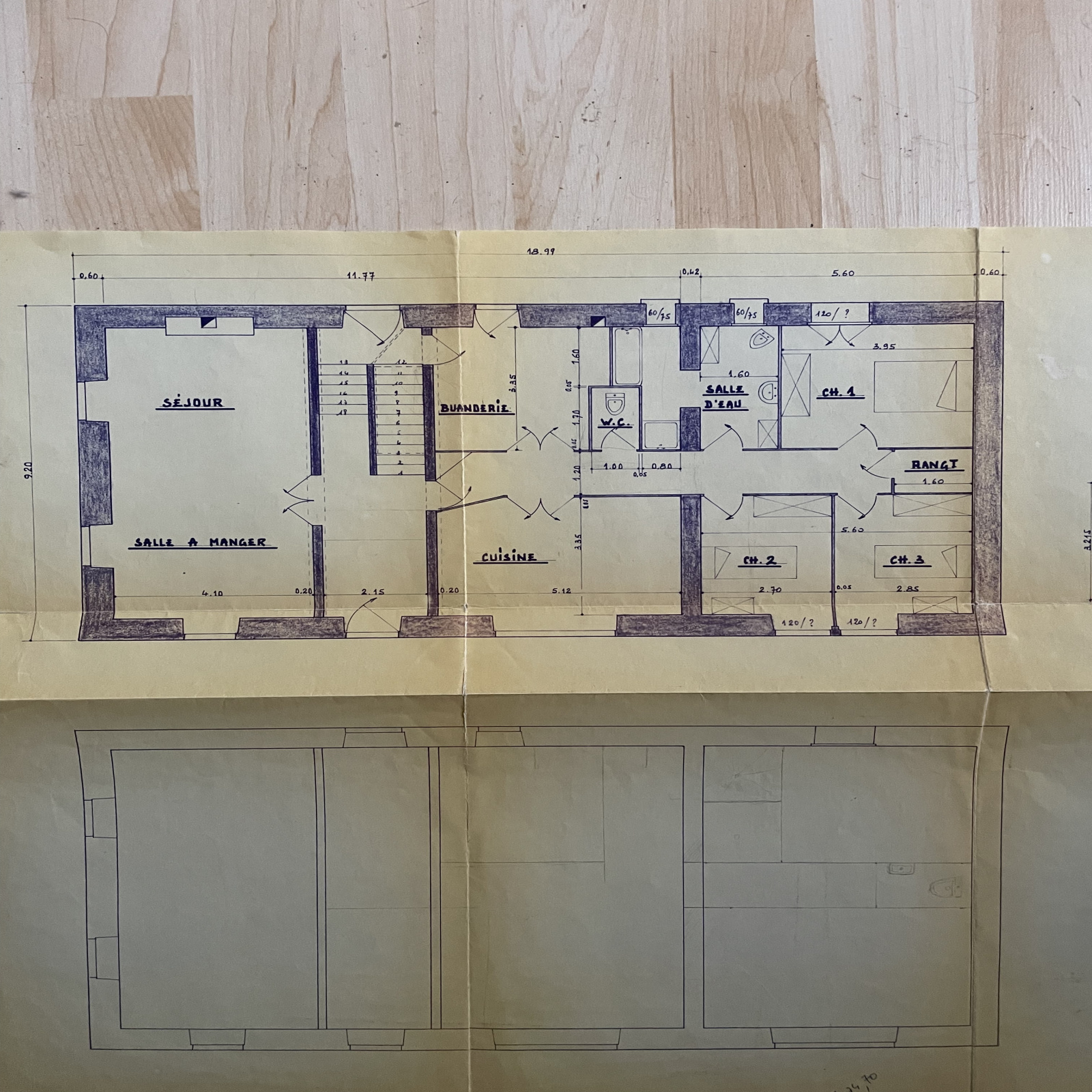 À l'étage, un appartement d'environ 95 m², nécessitant quelques ajustements pour y habiter, et une grande pièce de 45 m² avec une entrée extérieur. Les huisseries en double vitrage des années 1980.